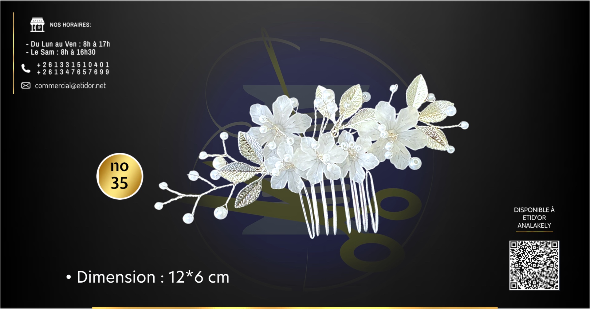 Un accessoire discret et élégant, parfait pour structurer vos coiffures avec simplicité et style. Convient à tous les types de cheveux.💬Pour effectuer votre commande, veuillez prendre en photo le produit et valider vers ce lien: m.me/etidorshop ou contacter notre commercial aux 📞 +261 34 02 270 83 / +261 33 15 104 01 📧commercial@etidor.net