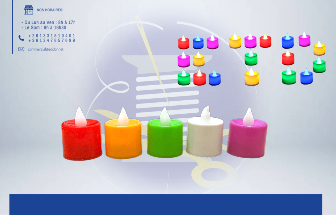 Ces bougies LED, disponibles en plusieurs couleurs, apportent une touche de douceur et d’originalité sans flamme ni fumée. 💬Pour effectuer votre commande, veuillez prendre en photo le produit et valider vers ce lien: m.me/etidorshop ou contacter notre commercial aux : 📞 +261 34 02 270 83 / +261 33 15 104 01 📧commercial@etidor.net
