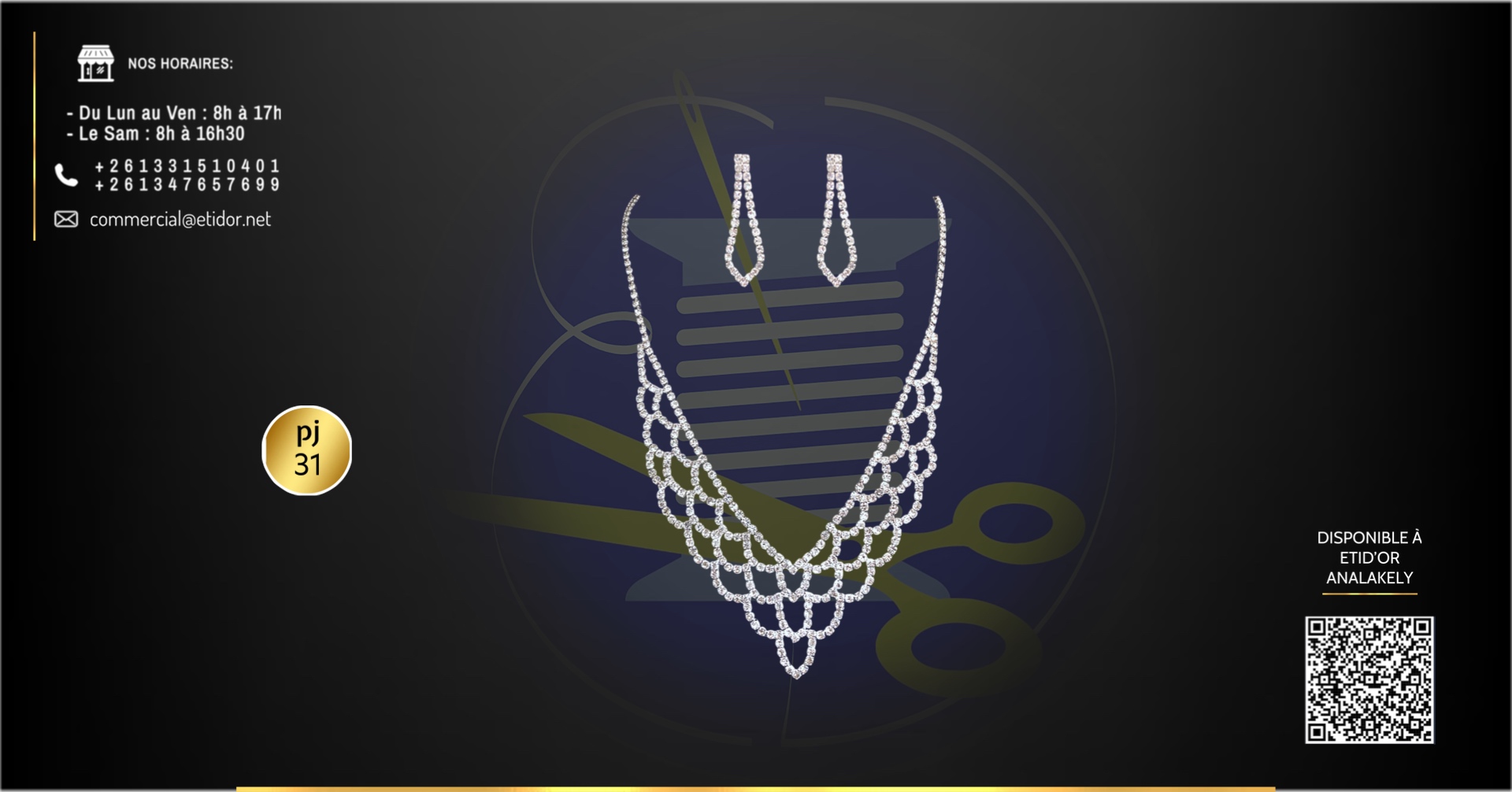 Ajoutez une touche de charme à vos tenues avec nos parures raffinées, idéales au quotidien comme pour vos occasions spéciales. 💬Pour effectuer votre commande, veuillez prendre en photo le produit et valider vers ce lien: m.me/etidorshop ou contacter notre commercial aux : 📞 +261 34 02 270 83 / +261 33 15 104 0 📧commercial@etidor.net