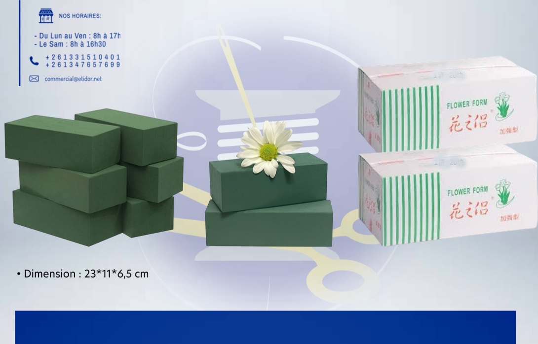 La mousse florale, l’indispensable des créations florales ! Elle garde vos fleurs fraîches plus longtemps et permet de réaliser facilement des compositions élégantes et stables.🏷️Prix affiché par pièce 🏷️Boîte de 20 pièces disponible à 120.000 Ariary 💬Pour effectuer votre commande, veuillez prendre en photo le produit et valider vers ce lien: m.me/etidorshop ou contacter notre commercial aux : 📞 +261 34 02 270 83 / +261 33 15 104 01 📧commercial@etidor.net .