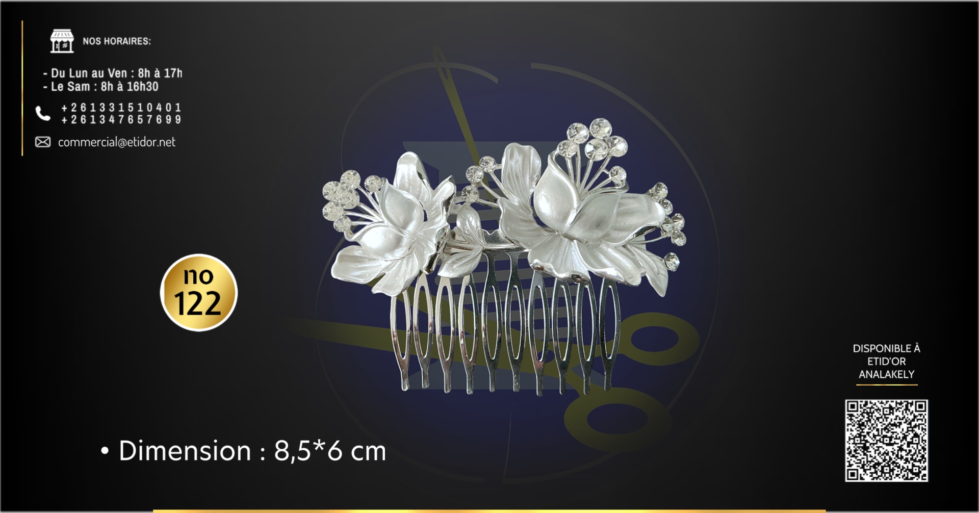 Un accessoire discret et élégant, parfait pour structurer vos coiffures avec simplicité et style. Convient à tous les types de cheveux.💬Pour effectuer votre commande, veuillez prendre en photo le produit et valider vers ce lien: m.me/etidorshop ou contacter notre commercial aux 📞 +261 34 02 270 83 / +261 33 15 104 01 📧commercial@etidor.net