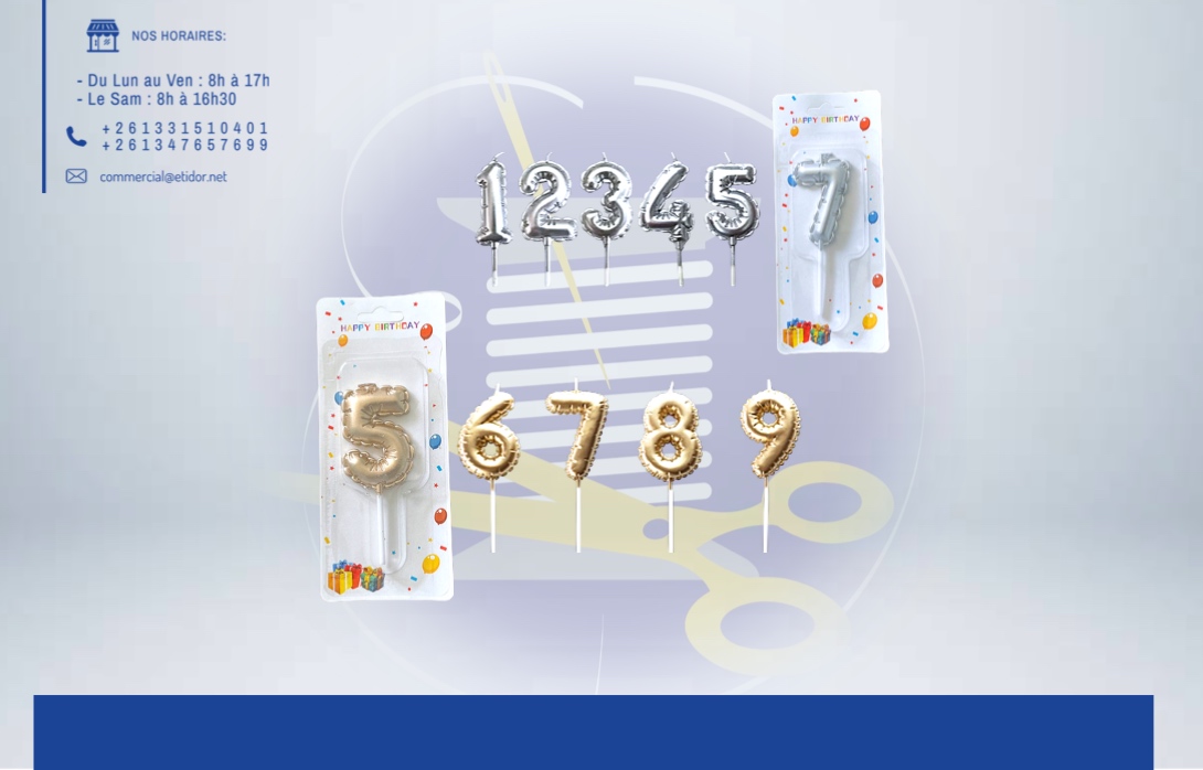 Chiffres dorés et argentés pour bougies d’anniversaire, idéals pour sublimer vos célébrations avec une touche chic et brillante. 💬Pour effectuer votre commande, veuillez prendre en photo le produit et valider vers ce lien: m.me/etidorshop ou contacter notre commercial aux : 📞 +261 34 02 270 83 / +261 33 15 104 01 📧commercial@etidor.net