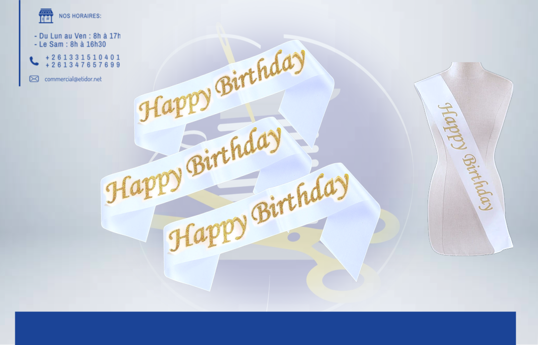 Une élégante écharpe en satin ornée de l’inscription Happy Birthday, parfaite pour mettre en valeur la star du jour. 💬Pour effectuer votre commande, veuillez prendre en photo le produit et valider vers ce lien: m.me/etidorshop ou contacter notre commercial aux : 📞 +261 34 02 270 83 / +261 33 15 104 01 📧commercial@etidor.net