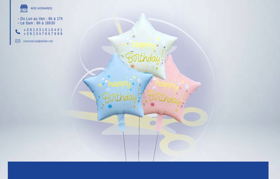Ballon en forme d’étoile, moderne et scintillant, qui apporte une note joyeuse et originale à vos fêtes. 💬Pour effectuer votre commande, veuillez prendre en photo le produit et valider vers ce lien: m.me/etidorshop ou contacter notre commercial aux : 📞 +261 34 02 270 83 / +261 33 15 104 01 📧commercial@etidor.net'