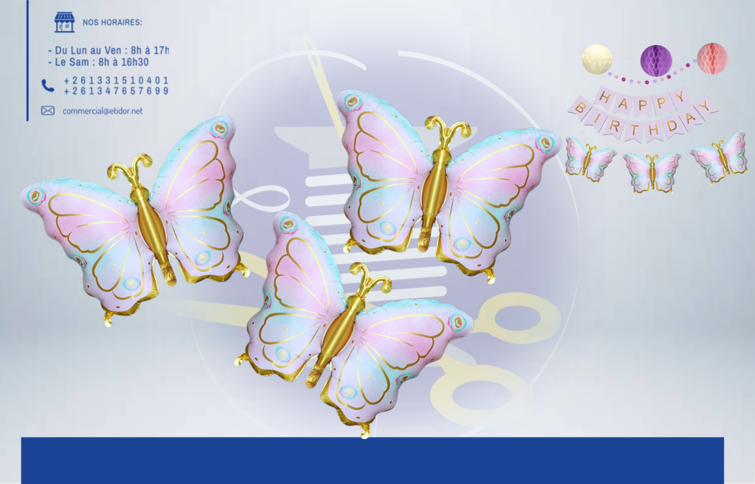 Laissez ce papillon coloré virevolter au cœur de votre décoration et transformer vos fêtes en un moment féerique, plein de légèreté et de magie pour petits et grands. 💬Pour effectuer votre commande, veuillez prendre en photo le produit et valider vers ce lien: m.me/etidorshop ou contacter notre commercial aux : 📞 +261 34 02 270 83 / +261 33 15 104 01 📧commercial@etidor.net