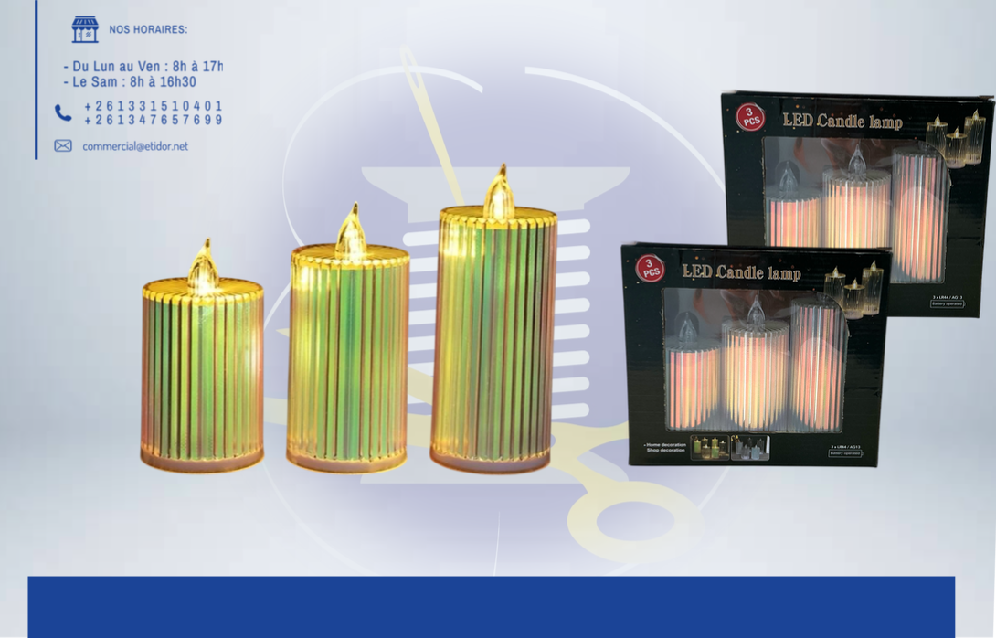 Éclairez vos espaces avec cette bougie LED aux reflets multicolores. Son effet lumineux changeant crée une ambiance douce et festive, sans flamme ni fumée. 💬Pour effectuer votre commande, veuillez prendre en photo le produit et valider vers ce lien: m.me/etidorshop ou contacter notre commercial aux : 📞 +261 34 02 270 83 / +261 33 15 104 01 📧commercial@etidor.net