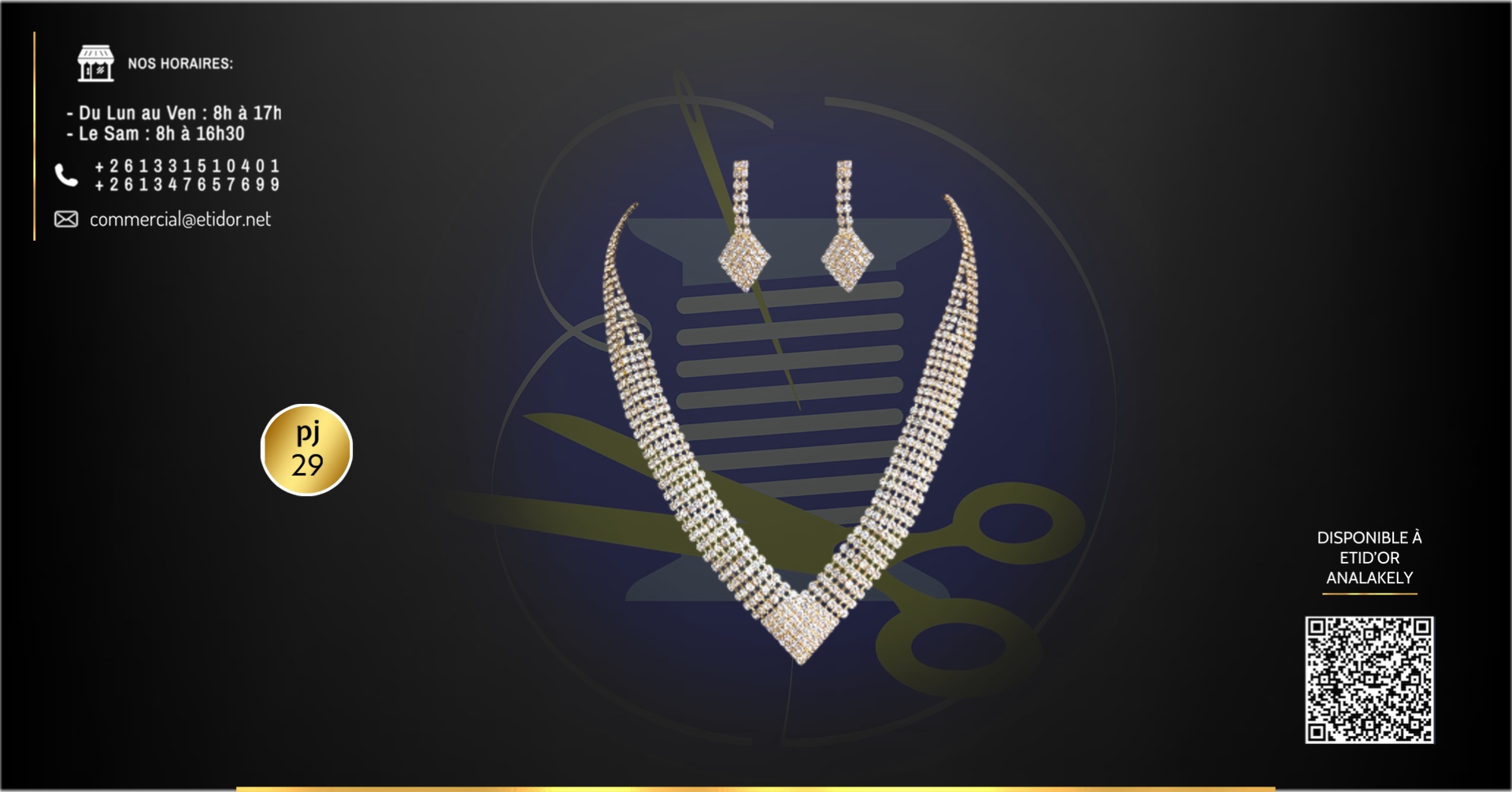 Ajoutez une touche de charme à vos tenues avec nos parures raffinées, idéales au quotidien comme pour vos occasions spéciales. 💬Pour effectuer votre commande, veuillez prendre en photo le produit et valider vers ce lien: m.me/etidorshop ou contacter notre commercial aux : 📞 +261 34 02 270 83 / +261 33 15 104 0 📧commercial@etidor.net