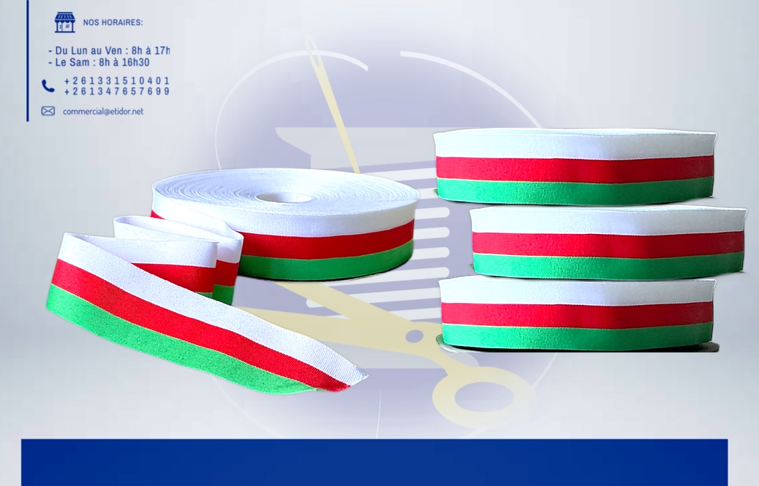Parfait pour vos créations patriotiques : couture, décorations, accessoires et événements. Couleurs nettes, matière souple et agréable à travailler. 🏷️Prix affiché par rouleau ; vendu également en mètre : 500 Ariary 💬Pour effectuer votre commande, veuillez prendre en photo le produit et valider vers ce lien: m.me/etidorshop ou contacter notre commercial aux : 📞 +261 34 02 270 83 / +261 33 15 104 01 📧commercial@etidor.net